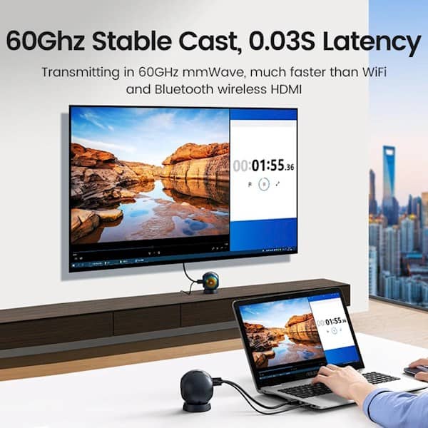 HDMI გადამცემი და მიმღები UGREEN CM438 (80641), 4K Wireless HDMI Transmitter And Receiver, Black