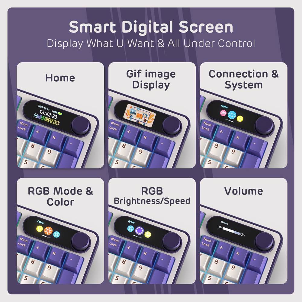 კლავიატურა Royal Kludge RK S98 RGB Mechanical Keyboard, Brown switch, Smart Display, Hot Swappable, Type-C wired, Bluetooth 5.0, 2.4GHz, Blackberry