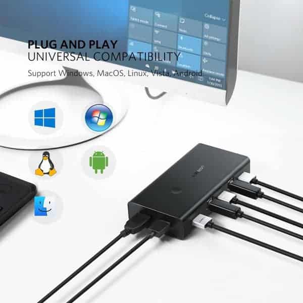 KVM სვიჩი UGREEN CM200 (50744), HDMI 2 IN 1 KVM Switcher, 4K*2K@30HZ, Black ლეტექნო