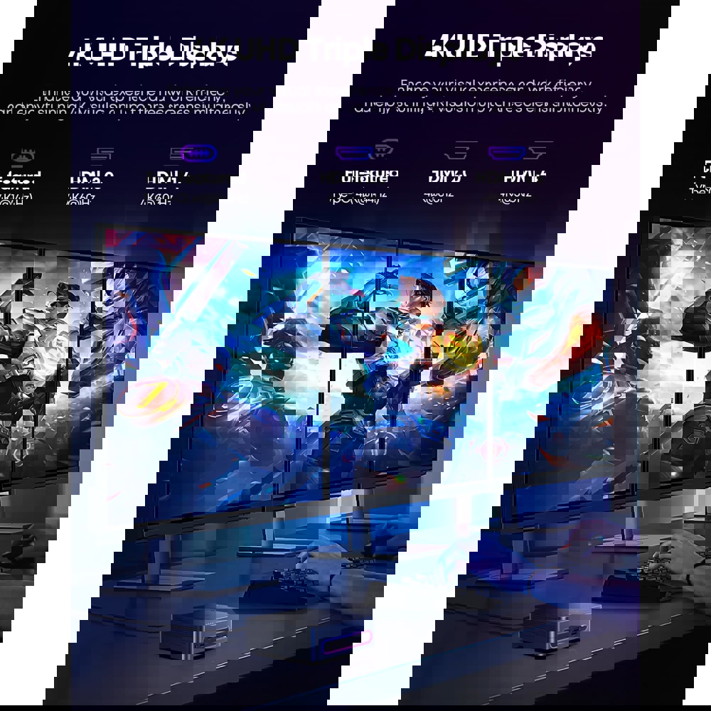 - ერთი დისპლეი 4K გარჩევადობით 60 ჰერცზე HDMI 2.0-ის საშუალებით
