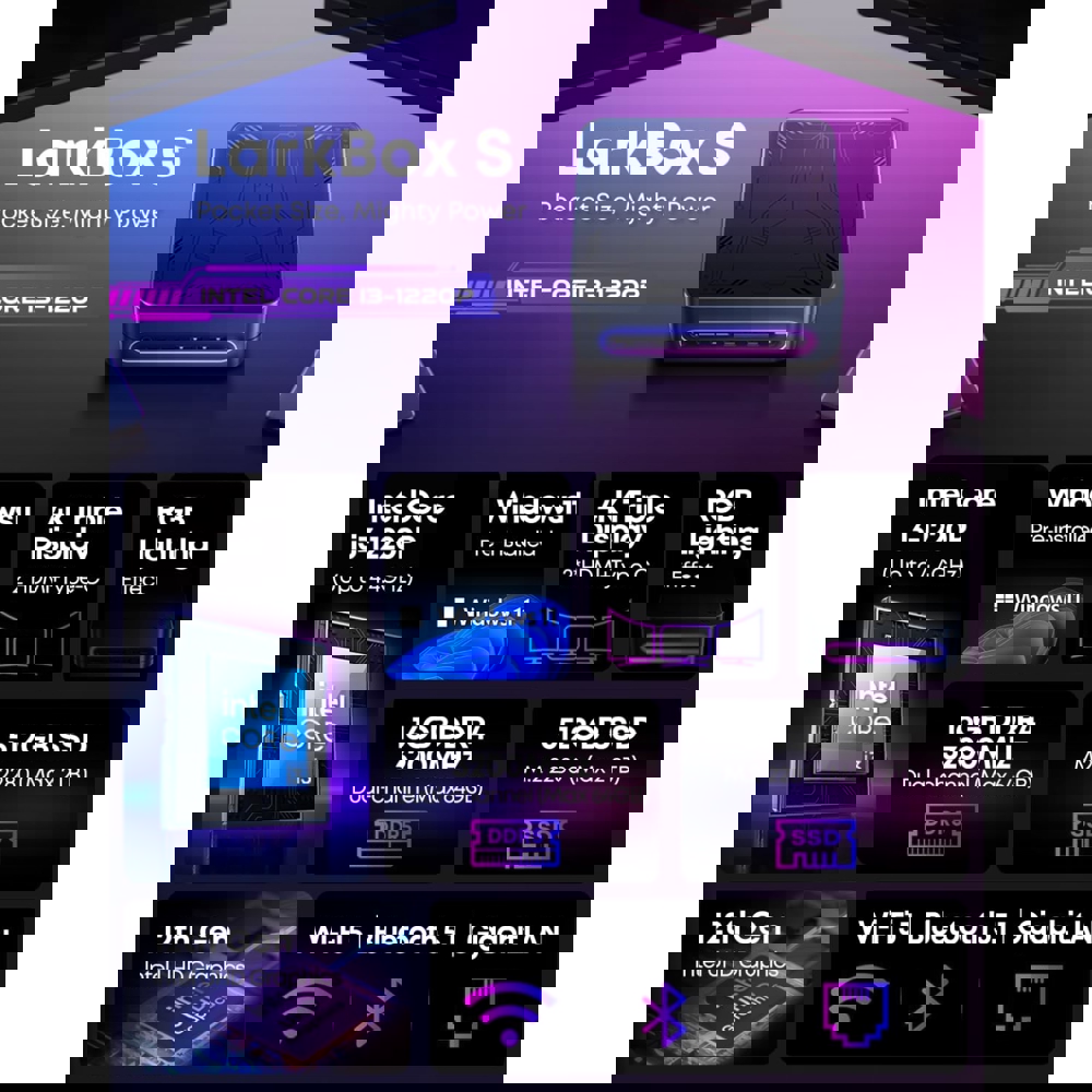 Mini PC Chuwi LarkBox S, i3-1220P, 16GB, 512GB SSD, Integrated, W11P, Grey/Black
