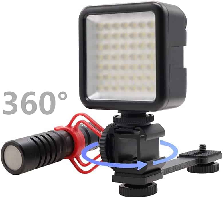 • Three cold shoe mounts enables many accessories combinations,such as LED light, microphone,doing what traditional single hot shoe can’t do!