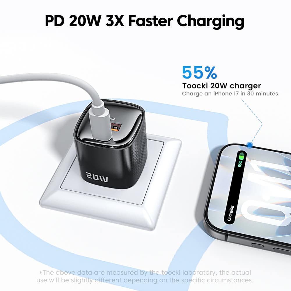 USB-C დამტენი Toocki Usb-c GaN pd charger 20W USB-A, Type-C Charger, XR01, Black