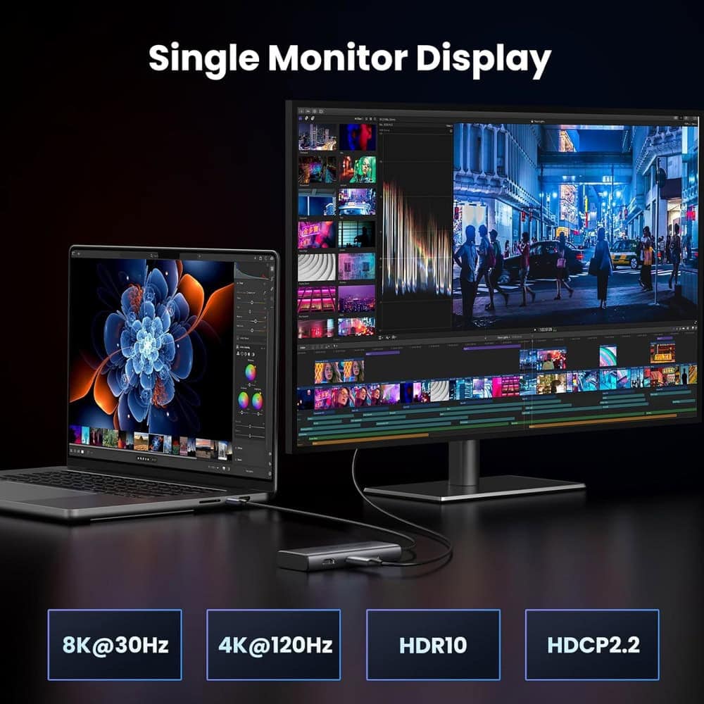 - 8K UHD დისპლეი: HDMI 2 პორტი USB C ორმაგი HDMI ადაპტერზე